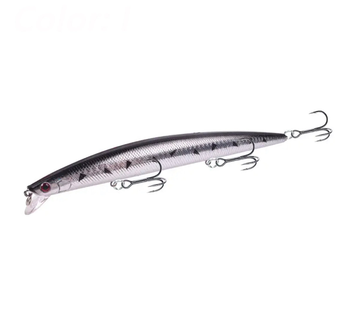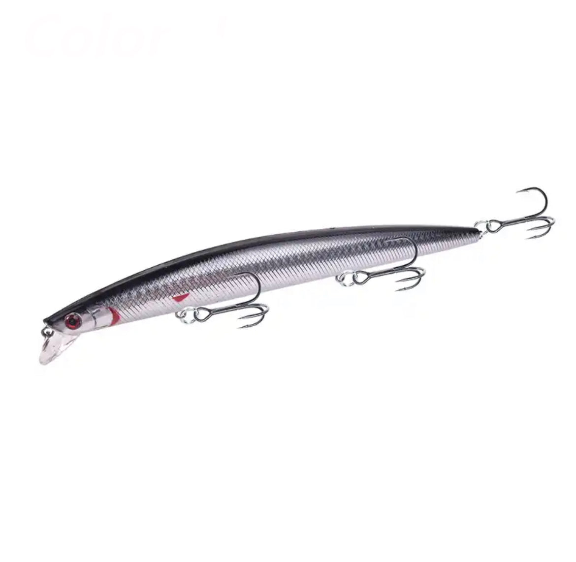 Fabriqué avec des matériaux de haute qualité, notre leurre de surface pour le bar conserve sa flottabilité et sa nage après plusieurs utilisations. Les dimensions de notre leurre flottant sont de 18 cm pour 24 grammes.