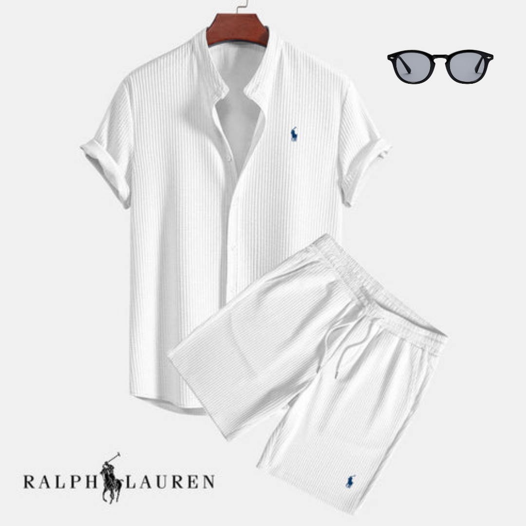 Bestaande uit een lichtgewicht overhemd met korte mouwen en een bijpassende short. Verkrijgbaar in vier stijlvolle en verfijnde kleuren (zwart, wit, lichtblauw en groen), belichaamt deze set de minimalistische Amerikaanse chic, ondertekend door Polo RL 🐎.