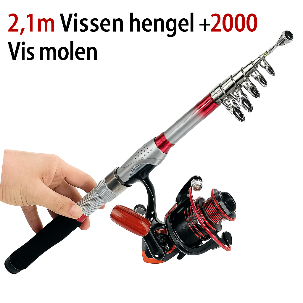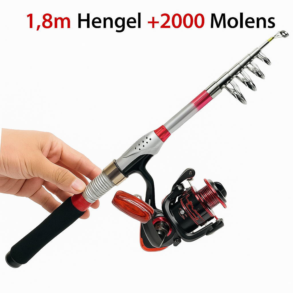 1 - Telescopische Hengel 1,80 m en Molen Serie 2000