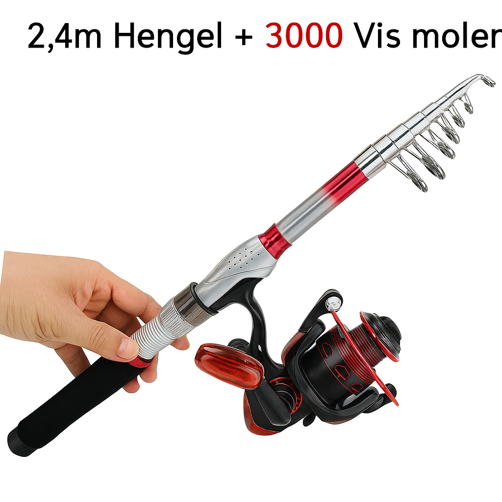 3 - Telescopische Hengel 2,40 m en Molen Serie 3000
