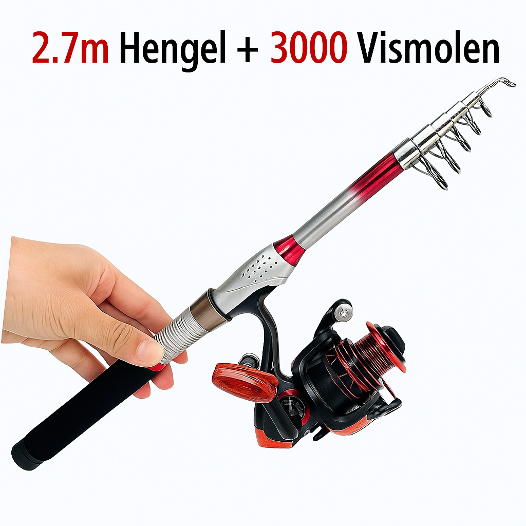 4 - Telescopische Hengel 2,70 m en Molen Serie 3000