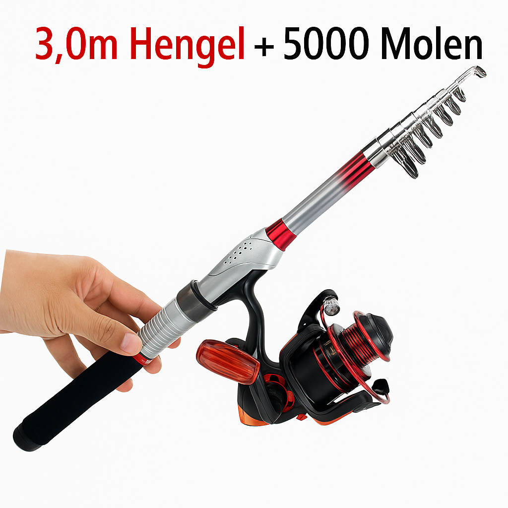 5 - Telescopische Hengel 3,00 m en Molen Serie 5000