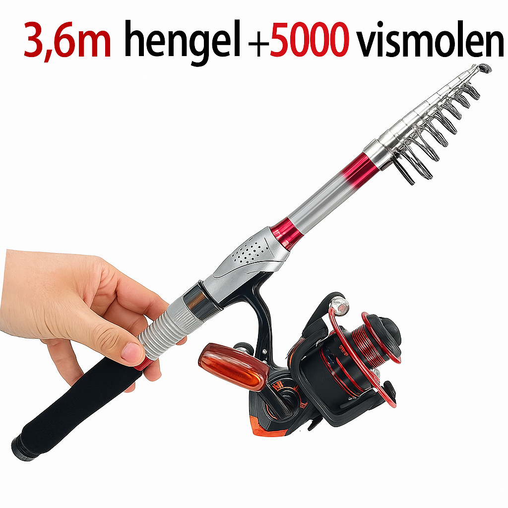 6 - Telescopische hengel 3,60 m en molen serie 5000