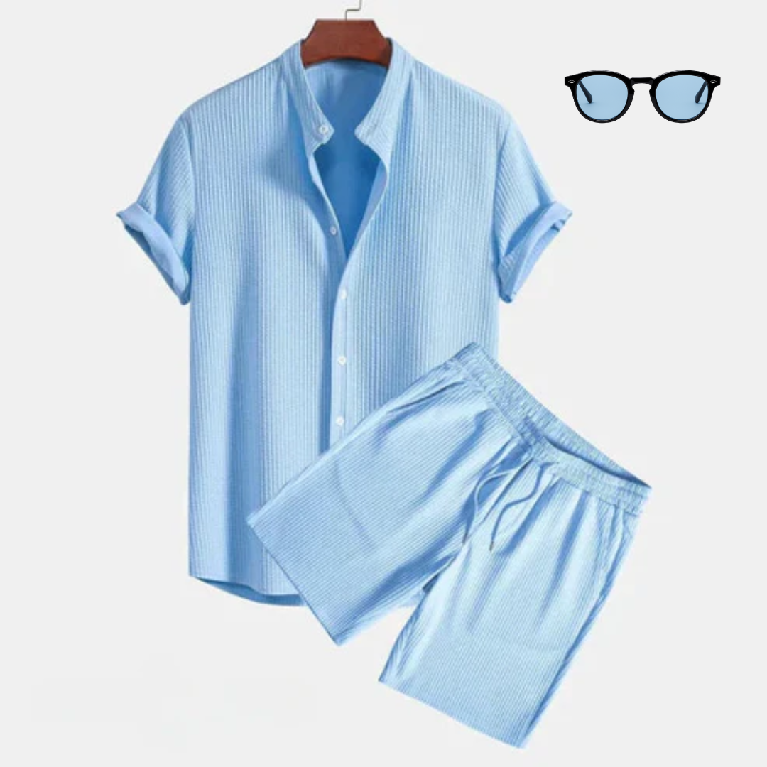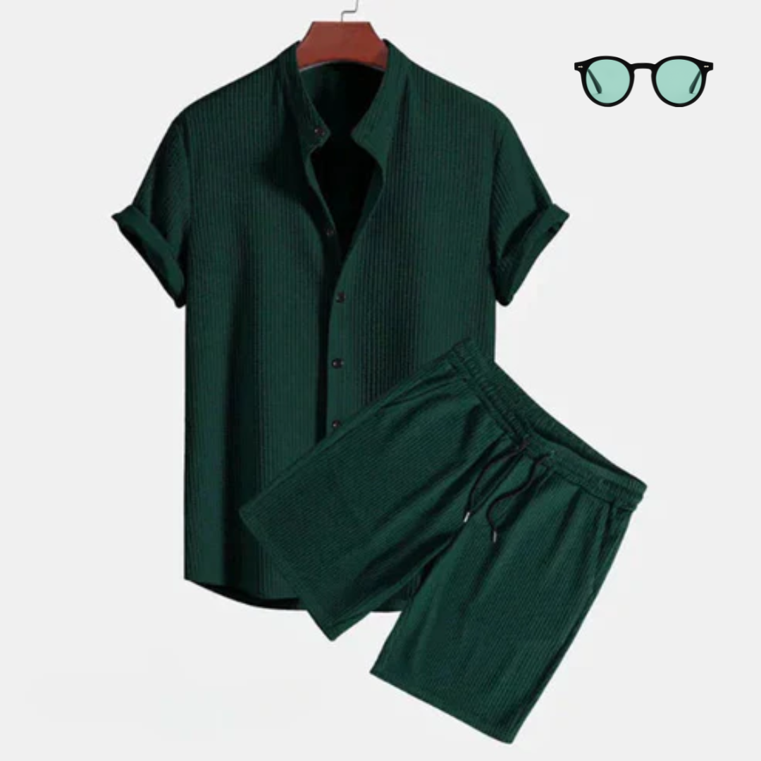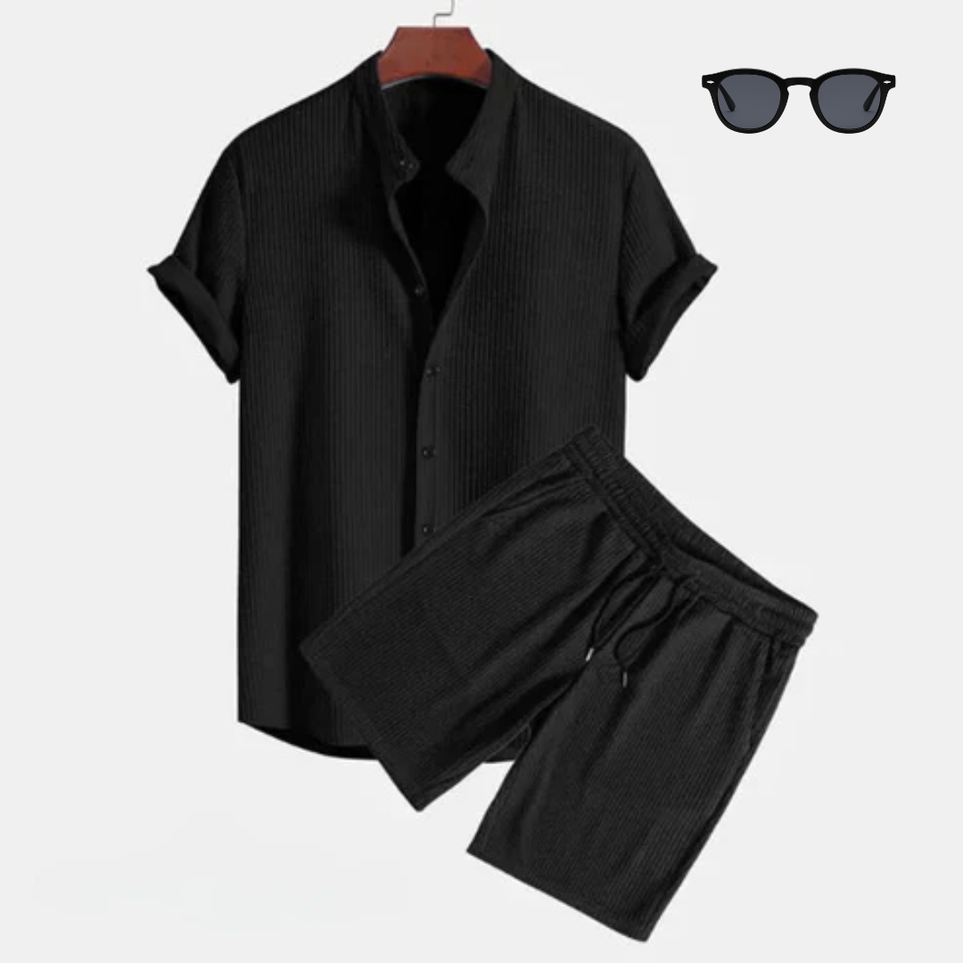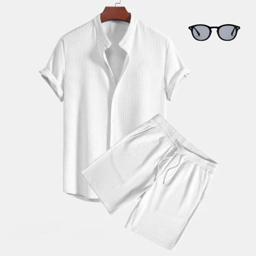 Met een vlekkeloos wit overhemd en verfijnde shorts die de look met elegantie compleet maken, is deze set perfect voor elke gelegenheid. Vervaardigd met premium materialen en een ontwerp dat klasse uitstraalt, ben je klaar om indruk te maken.